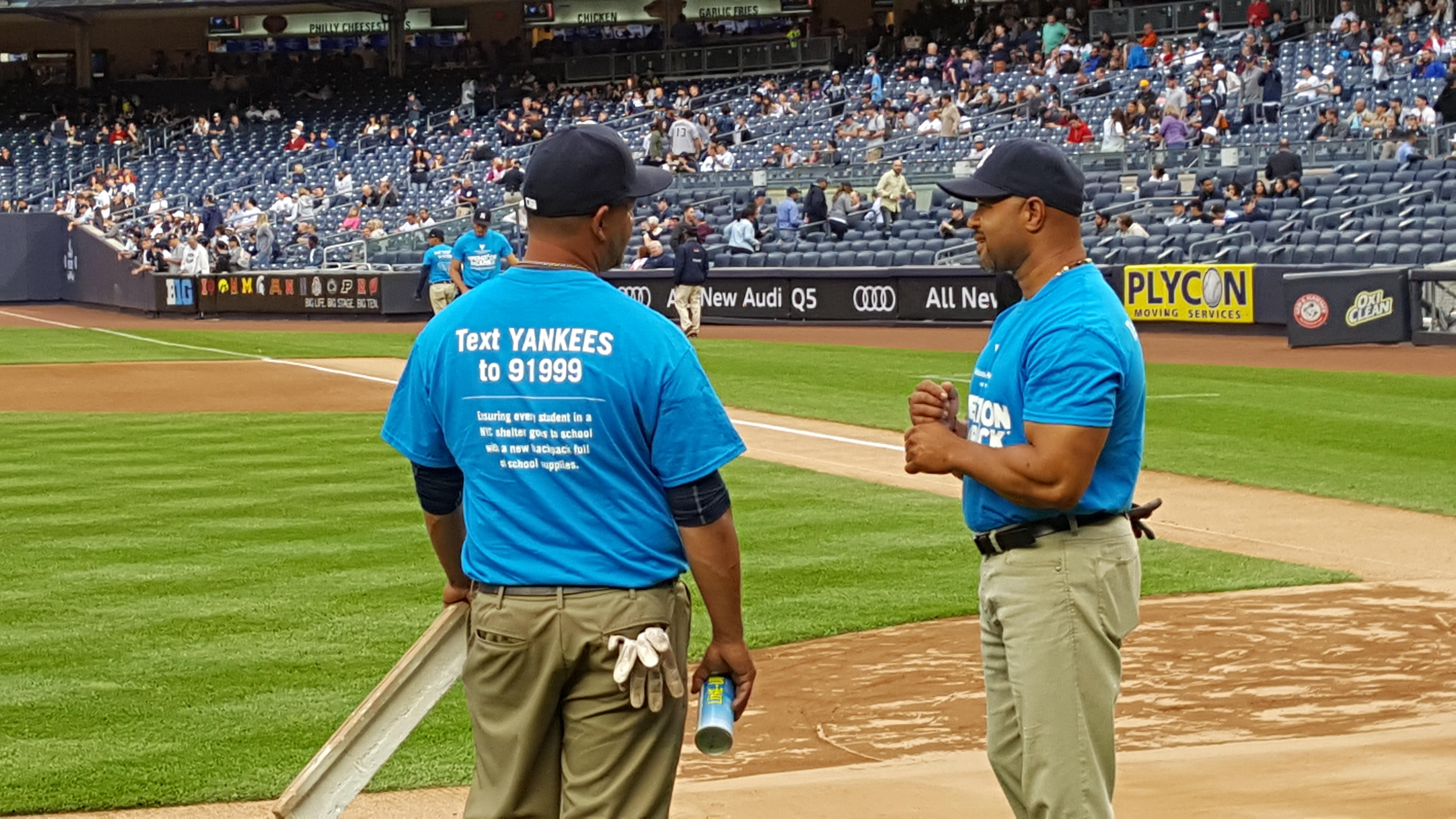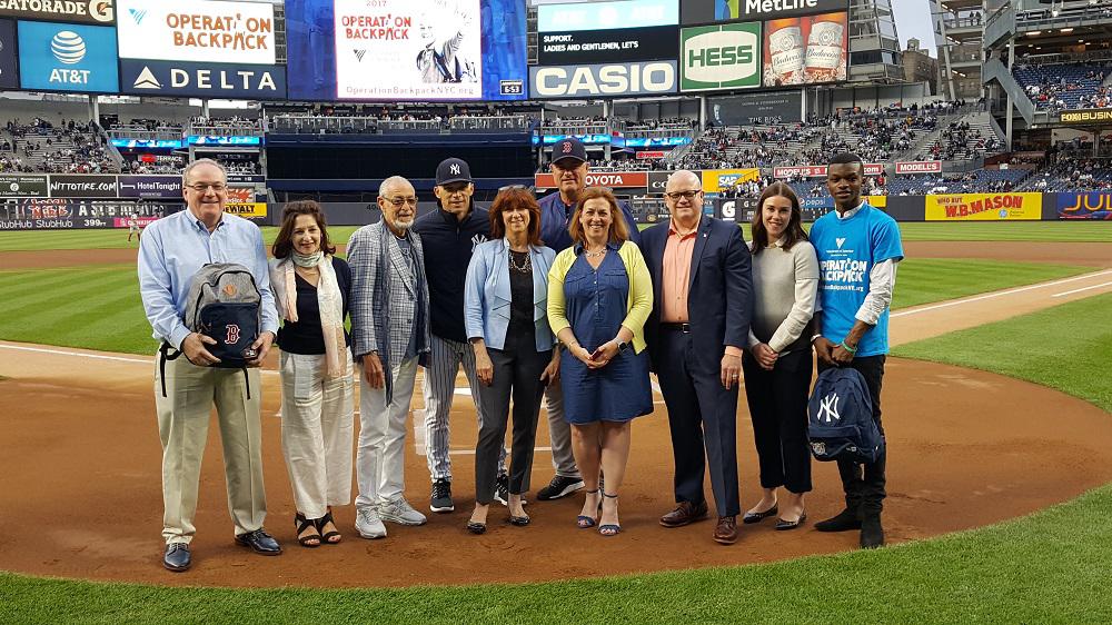 At a home game facing their rivals, the Boston Red Sox, the New York Yankees took a moment to honor the efforts of Operation Backpack®. Managers Joe Girardi of the Yankees and John Farrell of the Red Sox joined staff and board members from VOA-GNY for a special presentation on the field. In addition to this honor, grounds crew wore the official Operation Backpack® 2017 t-shirt, and our PSA played on the jumbotrons during the game. Fans attending were also invited to donate and support NYC's homeless children via their phones. Thanks again to the Yankees for hosting us, and to board chairman Gerry Cunningham for arranging!